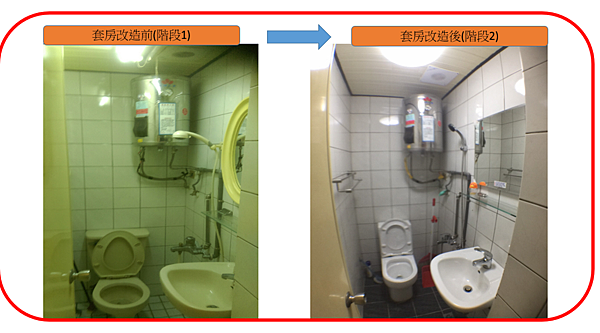 第一點: 將衛浴 廁所, 地板, 衣架, 鏡子, 電燈, 排風機 全部換新 =>這樣廁所就煥然一新